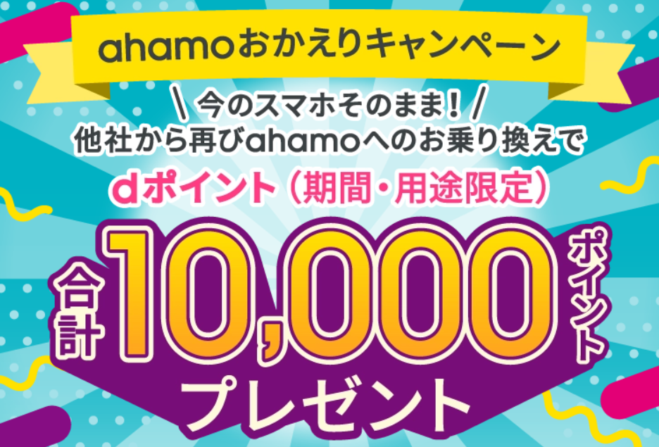 「もう一度ahamoにしてみようかな」という方は10,000ポイントももらえます。