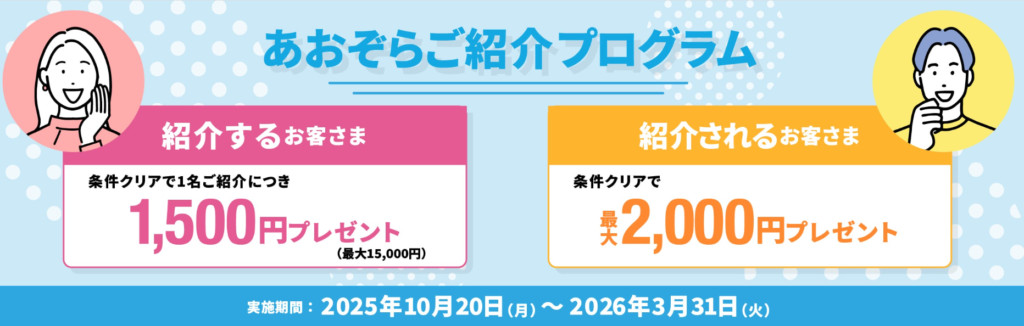 あおぞら銀行の紹介キャンペーン:特典詳細