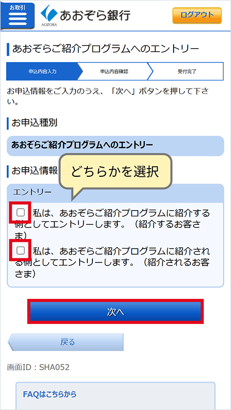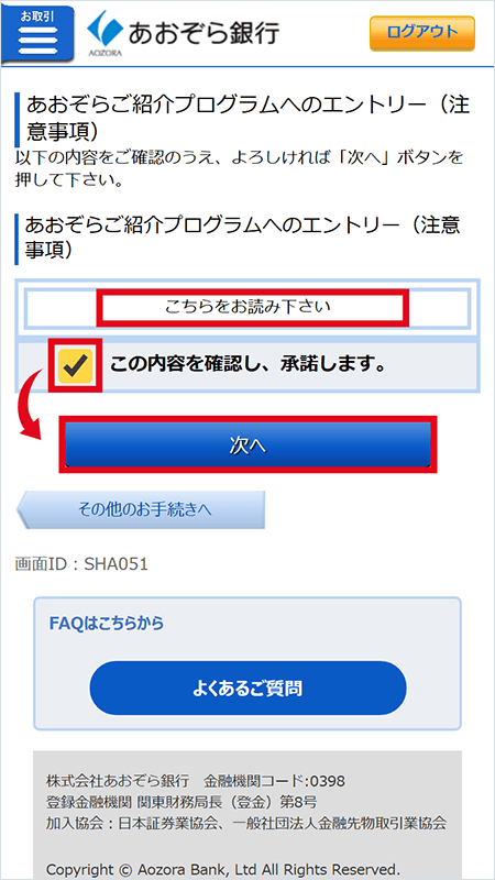 あおぞら銀行の紹介キャンペーン:申し込み手順