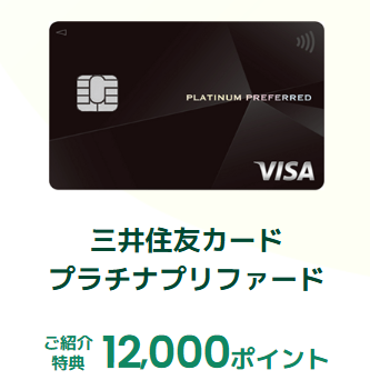 三井住友プラチナプリファードは誰かの紹介で作成すると、なんと12,000円分のVポイントがもらえます!(詳細はコチラ)